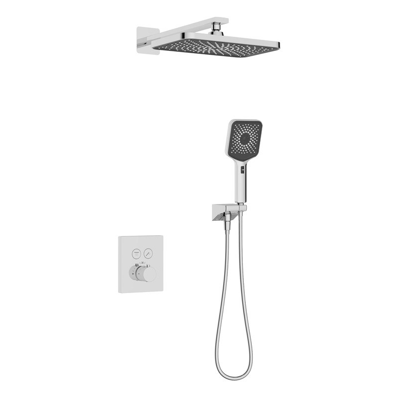 - Душевая система скрытого монтажа, с термостатом с прямоугольной лейкой в стиле модерн