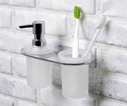 Мы предлагаем держатель укомплектованный стаканом и дозатором из матового стекла или керамики. Изделие оснащено удобным креплением, что позволит Вам закрепить держатель на стене, сэкономив при этом место на полочке. Дозатор и стакан съемные, благодаря чему уход за ними будет простым и легким.