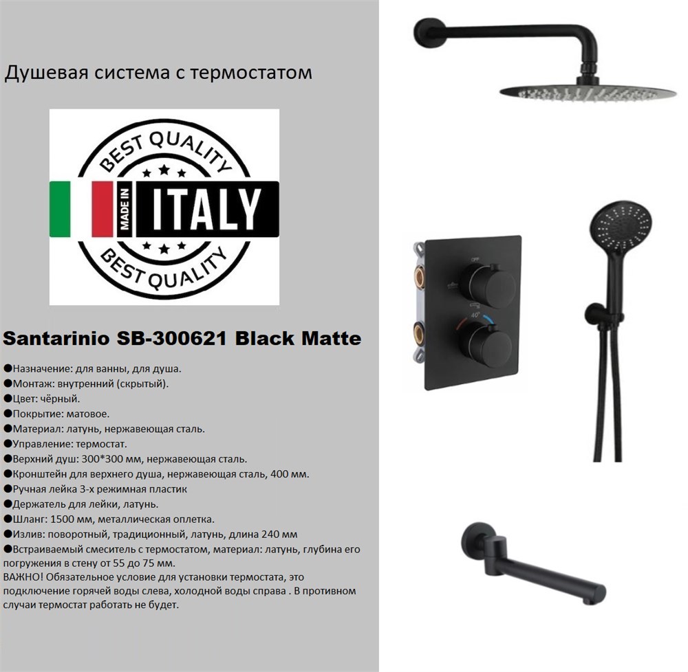 Душевая система с термостатом скрытого монтажа Santarinio SB-300621 черная матовая