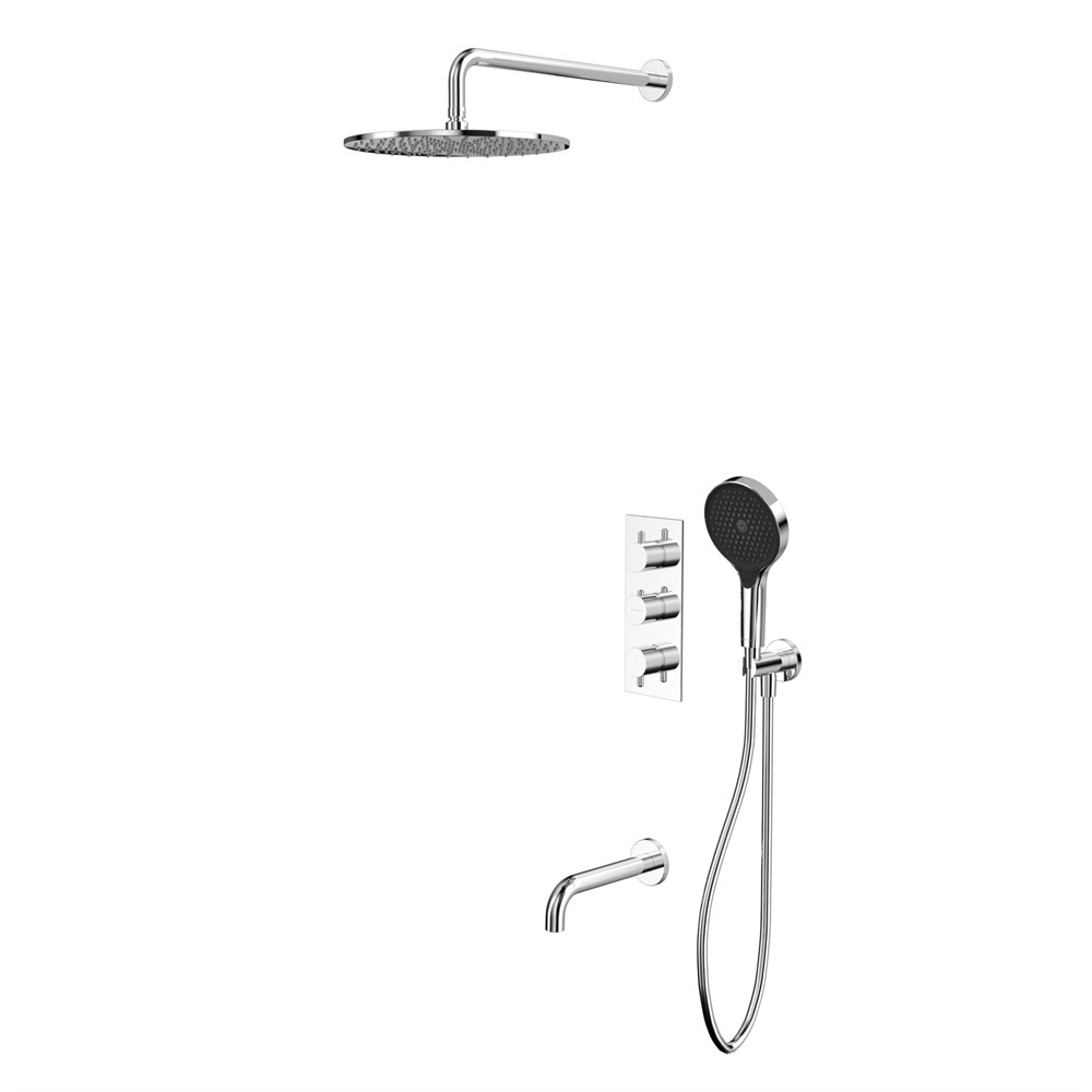 Оснащениесмеситель, скрытая часть смесителя, ручной душ, шланг, держатель ручного душа, излив, верхний душ
