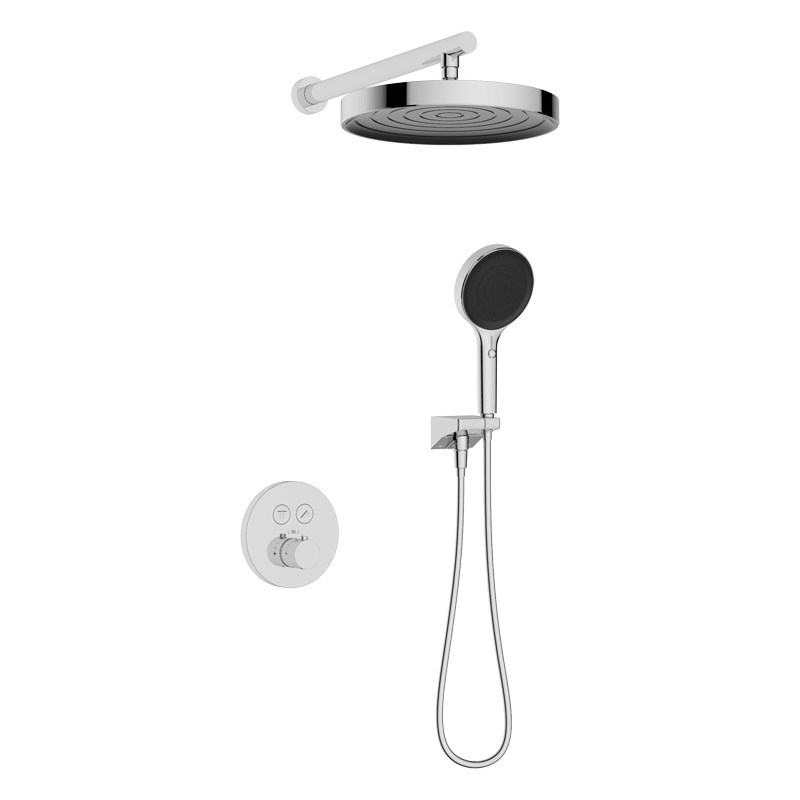 Оснащениесмеситель скрытого монтажа, скрытая монтажная часть, кронштейн, лейки, настенное соединение шланга с поворотным держателем, шланг, крепления