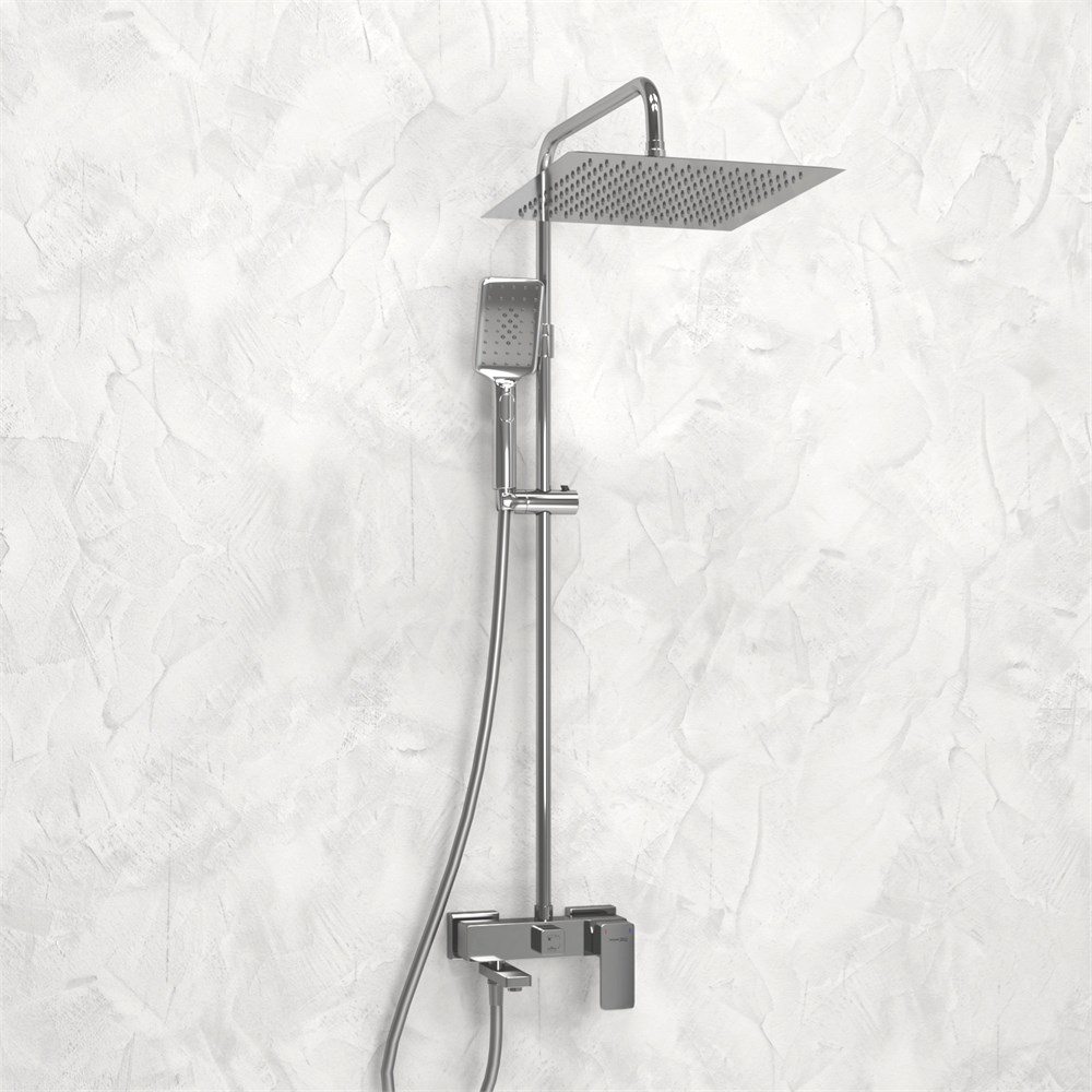 Оснащение-стойка -ручной душ +шланг 1,5 м -верхний тропический душ -смеситель однорычажный